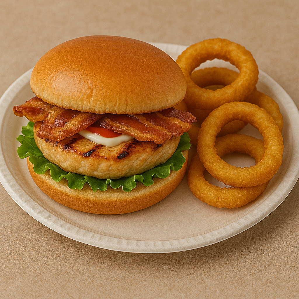 Grilled Chicken Burger with Onion Rings